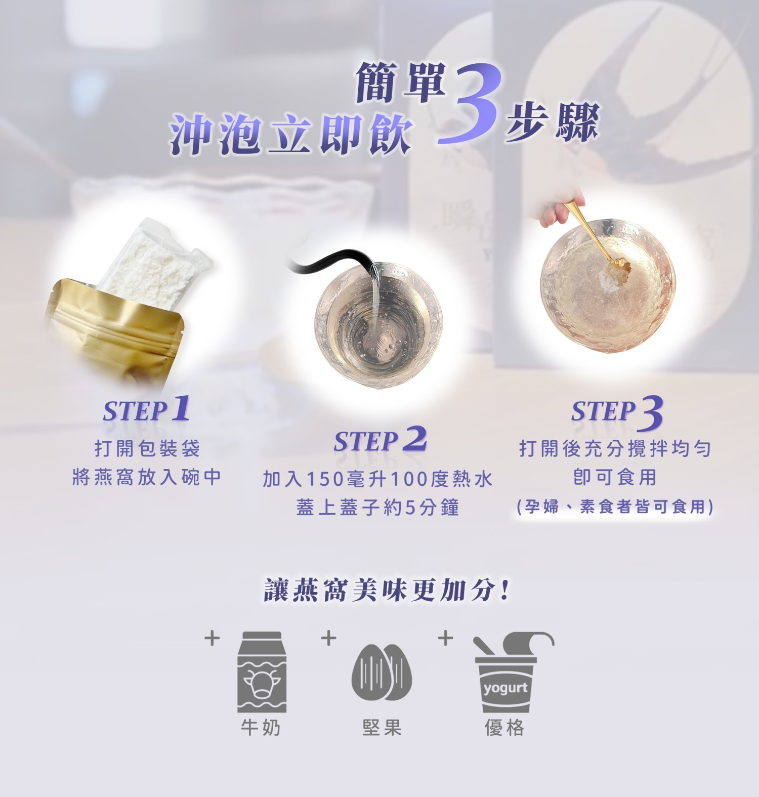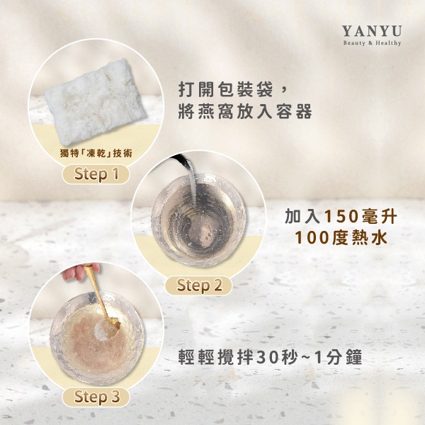 即時沖泡式燕窩,加水立即飲!